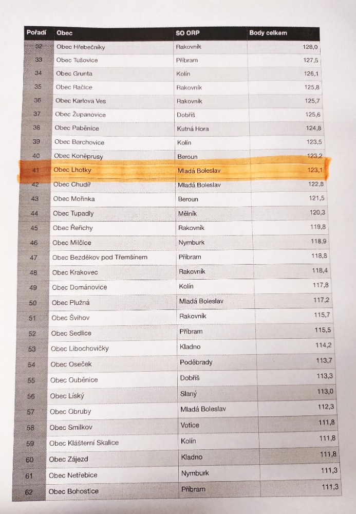 Gratulujeme si – jsme na 41. místě mezi obcemi do 299 obyvatel!